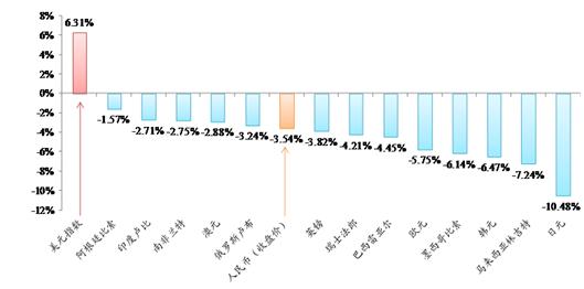 從長周期看,人民幣也表現(xiàn)出穩(wěn)中有升的態(tài)勢,過去5年CFETS人民幣匯率指數(shù)、參考BIS貨幣籃子和SDR貨幣籃子的人民幣匯率指數(shù)以及對美元匯率分別升值10.9%、11%、4.4%和8.8%,過去10年分別升值28.3%、33.4%、28.4%和11.9%,人民幣在全球貨幣體系中仍表現(xiàn)出穩(wěn)定強(qiáng)勢貨幣特征。